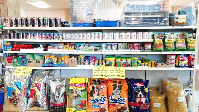 Na prodejně lze zakoupit vše pro psy - krmiva, pamlsky, chovatelské potřeby
