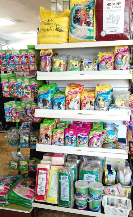 Na prodejně lze zakoupit vše pro ptáky a hlodavce - krmiva a směsy, klece, hračky, vitamíny, podestýlky chovatelské potřeby